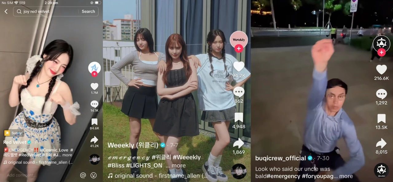 今年7月,Budots音乐彻底在全球引起了病毒式的传播。韩国知名女团Weeekly、Red Velvet,国内的不齐舞团都开始在TikTok对《Emergency Budots》舞蹈动作进行不同程度的编排演绎。