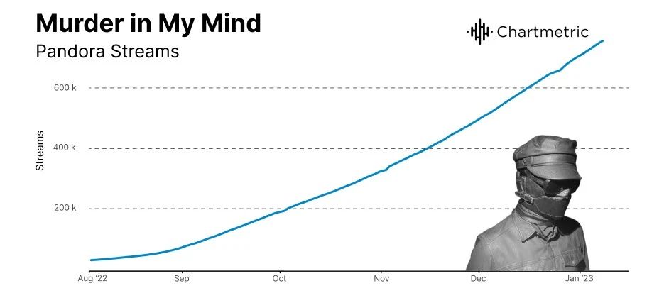 短视频社区有一种特殊的魔力,似乎特别擅长将小众的微型流派推向公众视野,但通常这些热潮的持续时间都相对较短。 以2022年在TikTok上爆火的嘻哈音乐的子流派Phonk为例,Kordhell的《Murder In My Mind》在Spotify上超过6亿次,在TikTok视频内容数量达到100万。TikTok用户经常将这首歌作为背景音乐,配合赛车高速漂移、游戏卡点、爱豆出场画面,让Kordhell甚至成为了当年Chartmetric增长最快的艺术家之一。