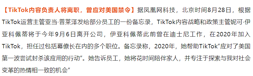 妮可伊亚科佩蒂任职TikTok内容战略和政策负责人,其行事风格是,“专门收拾不老实的美国人”,用美国政策、法律“漏洞”与美国当局对抗。加盟TikTok,妮可伊亚科佩蒂的第一件事就是“帮TikTok抗住了美国第一波封杀”维持了TikTok在美国的正常运营与增长。