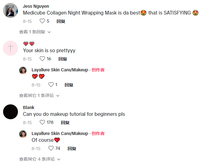 评论区的观众除了夸赞博主精致的皮肤以外,还向博主问出了许多关于这款产品的使用方法,博主也都一一解答。