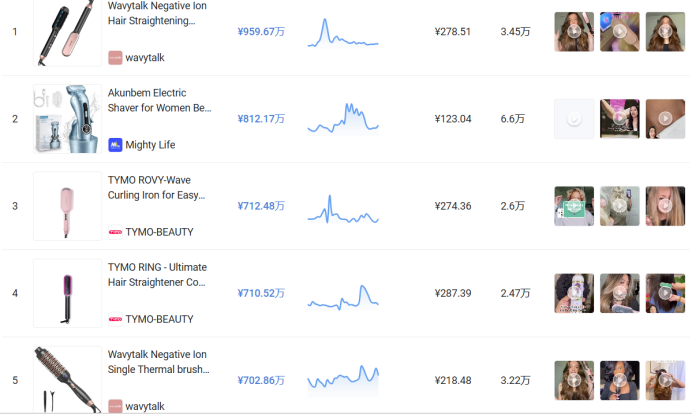 在个护电器类目中,本月销量排名前五的产品,有四个都是卷发或直发棒,足见美发类商品在TikTok shop上有多好卖。据大数跨境观察,这四个产品来自于两个品牌,