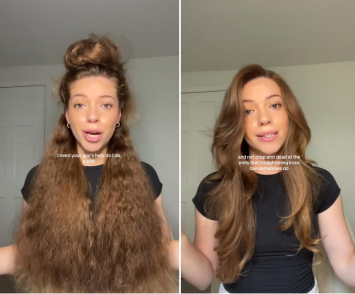 达人@danielleathena的视频直观地展示出了这款直发梳的效果,在视频中,她顶着一头炸毛的长发,虽说发量多得令人羡慕,但是多到这样已经到了令人困扰的程度。这并不是个例,欧美人的发质柔软、细软、密度高,而欧美流行的审美偏好轻盈蓬松、柔顺健康的发型,再加上人们注重发型,所以普遍使用卷发棒和定型产品来造型。在视频中,她使用直发梳之后的头发柔顺且有光泽。
