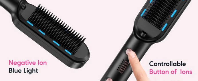 这款产品的一大主要卖点是护发。直发刷上有负离子开关,并配有蓝色负离子指示器,打开开关之后会释放的数百万负离子,可以深入到发丝,修复烫发和染发造成的损伤,抑制静电,增强头发的整体健康。