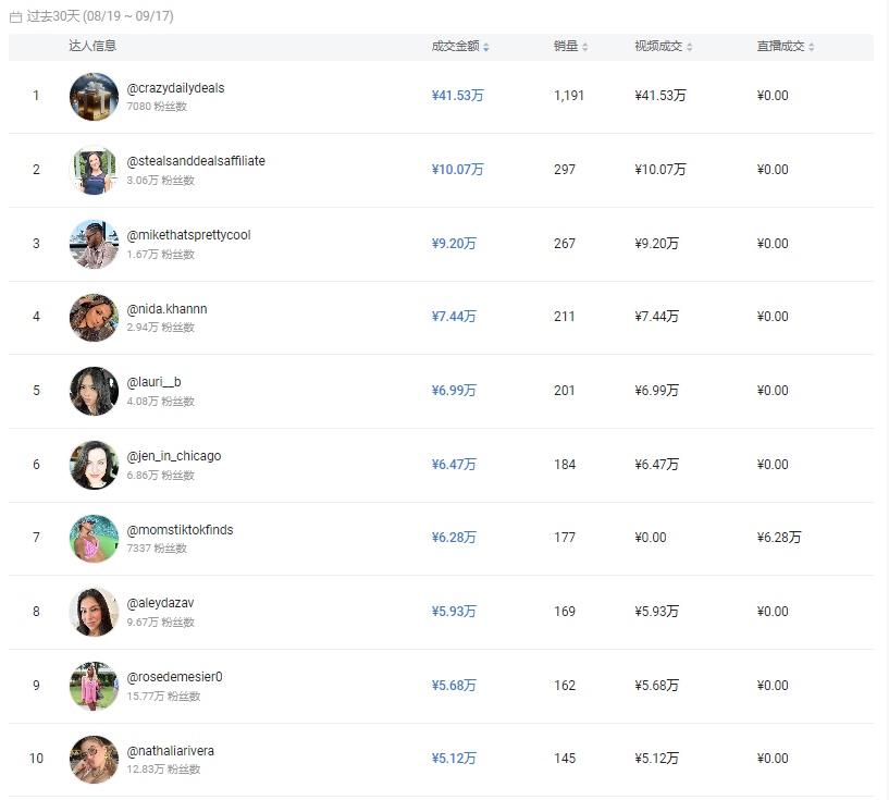 近一个月,TikTok视频为该产品带来的成交额为132.15万元,总成交金额在158.70万元,可见达人带货模式起到了重要作用。但需要注意的是,过去30天内发布的视频中,大多数是视频投放广告,即带有AD标识,说明在达人带货模式的基础上配合精准的广告投放,会扩大营销效果。