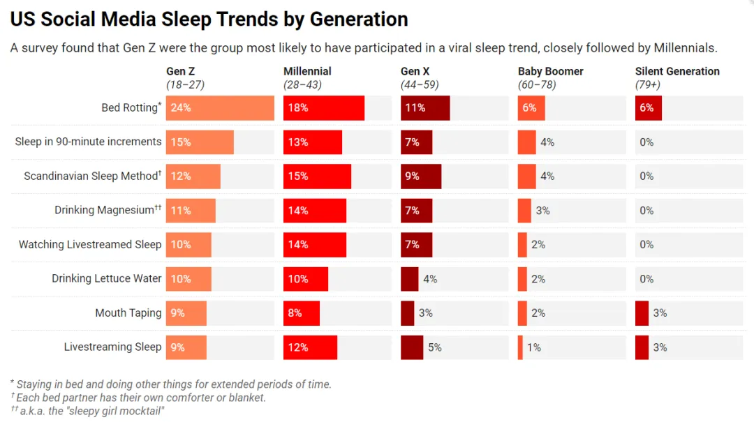 值得一提的是,在众多睡眠趋势中,“bed rotting”趋势现象尤其普遍。