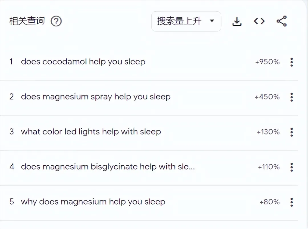 其中英国、美国、爱尔兰、澳大利亚、新西兰等国对助眠相关话题的搜索热度最高,其中,“与助眠饮料相关”的搜索热度上升到600%,”咨询维生素保健品使用效果“的热度飙升350%—550%之间。此外,失眠群体也开始关注一些家居产品的助眠效果,关于”LED灯颜色助眠”的搜索热度也达到 150% 。