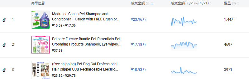 宠物洗发水受到东南亚地区消费者青睐随着养宠人群日益年轻化,对主人而言,宠物早已成为了许多家庭不可或缺的一员。这种深厚的情感促使人们愿意投入更多的时间和金钱,精心为宠物挑选更健康、优质的产品。 据Kalodata显示,一款Vunguard Madre de Cacao宠物洗发水位列TikTok菲律宾地区销量第一,在最近一个月卖出近万件,成交金额达23.96万元。