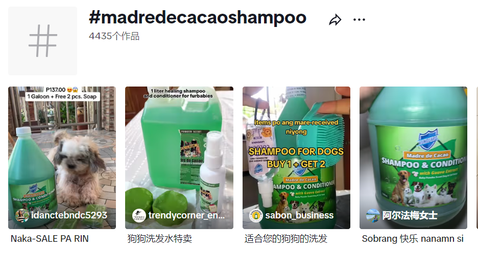 Vunguard Madre de Cacao不仅在TikTok上迅速积累了大量人气,还在Lazada、shopee、Amazon等全球知名电商平台上均有售卖,实现了广泛的销售覆盖。此外,为了进一步提升产品知名度和用户体验,该品牌还在YouTube、Facebook等社交媒体平台上发布产品使用教程视频,借助知名博主的影响力,有效提升产品的口碑与市场认可度。 在TikTok平台上,通过搜索热门宠物用品品牌“Vunguard Madre de Cacao”,可以发现这些视频不仅详细讲解了品牌产品的使用方法,并且通过实际为宠物洗澡的场景,直观地展示了产品的清洁效能,让消费者对产品的实际效果一目了然,从而激发购买欲望。