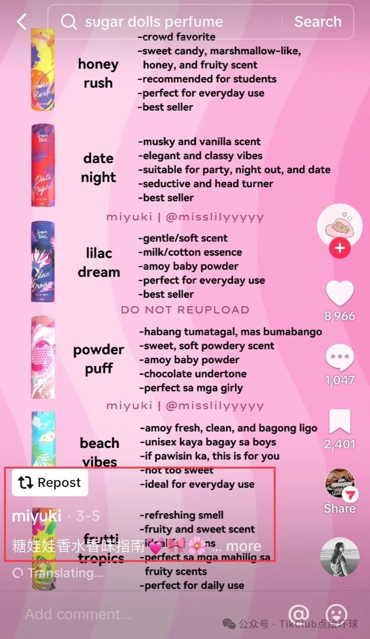 直销商是菲律宾香水行业最大的分销渠道之一,而电商平台如Lazada、Shopee等也为消费者提供了便捷的购物方式。 Sugar Dolls PH在TikTok上的成功,不仅是品牌自身努力的结果,更是对TikTok东南亚美妆个护市场潜力的有力证明。 随着消费者对美好生活的追求日益增强,美妆个护产品将继续在TikTok东南亚市场占据重要地位。文章来源:TikClub点绘环球