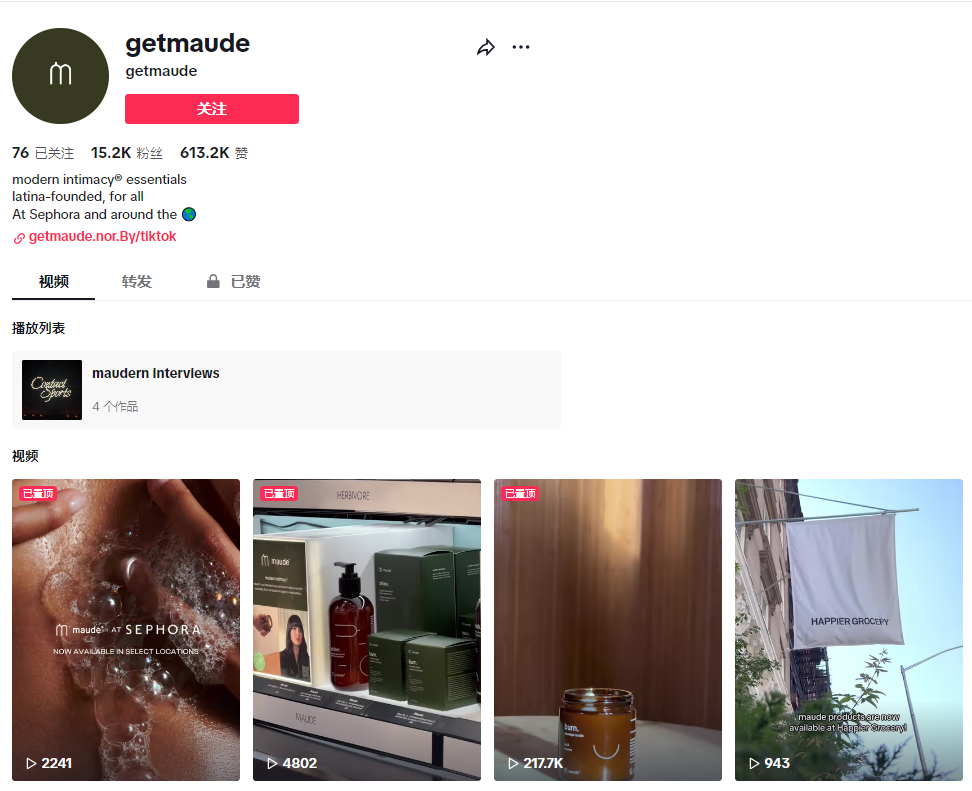 在TikTok上,Maude凭借其1.52万的粉丝和61.32万的点赞量,塑造了一个充满活力且紧密贴合年轻消费群体偏好的品牌形象。尤其是2023年的黑色星期五购物狂欢节期间,Maude巧妙运用营销策略发布了一条趣味视频。 视频中它们将品牌标志性的震动棒做成了圣诞树的样子,这一设计不仅淡化了产品的传统性暗示,更添了几分幽默与节日氛围,这条视频也在TikTok上累计270万播放,16万点赞,这种轻松愉快的方式更加深了消费者对品牌的印象。