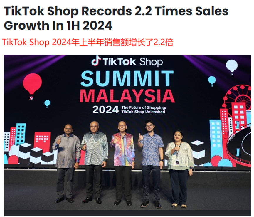 TikTok Shop 2024年上半年销售额增长2.2倍 图源:bernama