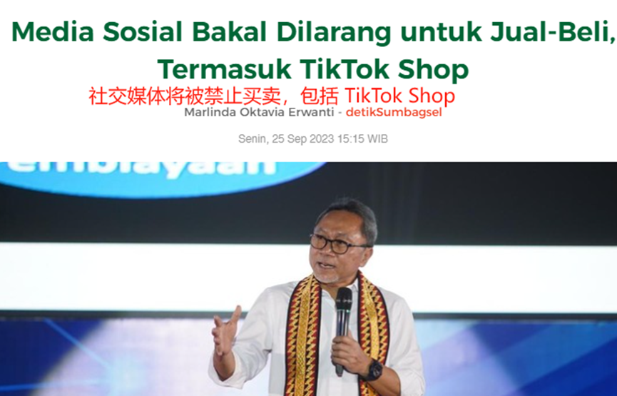 印尼禁止TikTok Shop在内的社交电商 图源:detikcom