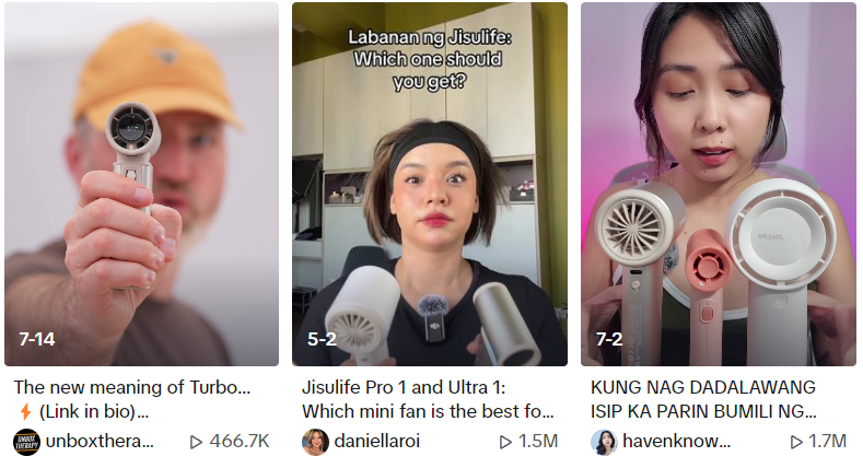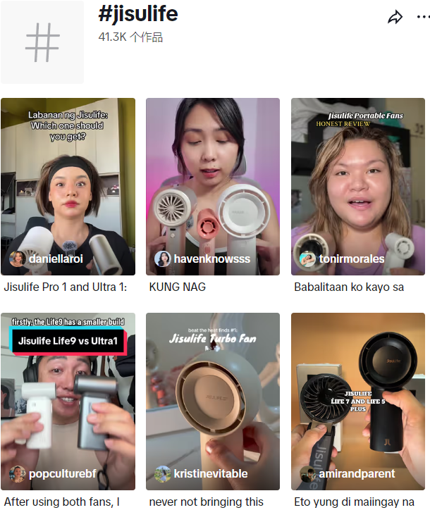 以@daniellaroi为例,她从消费者的角度出发,对比了两个品牌的风扇,并分享了自己对JisuLife风扇的使用感受。 这种生活化的语言和真实的分享不仅赢得了用户的信任,也激发了用户的购买欲望,成功地提高了产品的销售转化率。 从这一系列行为中,我们能够看出JisuLife在TikTok上的成功策略:利用创意短视频展示产品,鼓励用户参与互动,以及通过与不同类型的达人合作,全面提升品牌的影响力和销售业绩。