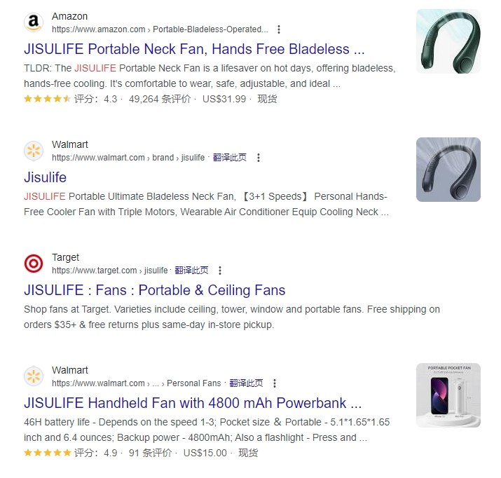 JisuLife还构建了品牌独立站,通过提供多语言客服支持和详尽的产品信息,以及优化SEO和SEM策略来增强网站流量,确保能直接触达全球消费者。 此外,其销售网络不仅局限于社交媒体平台,还扩展至亚马逊、eBay、速卖通、Temu、lazada、Shopee等主流跨境电商平台。 尤其在亚马逊上,JisuLife的“小熊多功能迷你风扇”因其亲民价格和高品质获得广泛认可,月销量超两万,以及4.6的高评分和77%的五星好评率,均证明了其产品在市场上的竞争力。 通过在线上多维度的布局,JisuLife不仅在各大社交媒体平台上取得了显著的成绩,更在电商平台上展示了其产品的强大市场竞争力,形成了一个完整的线上品牌推广体系。
