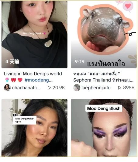 在TikTok上直接出现了一种专属妆造名为“Moo Deng Makeup”,浏览量动辄上万乃至上百万。