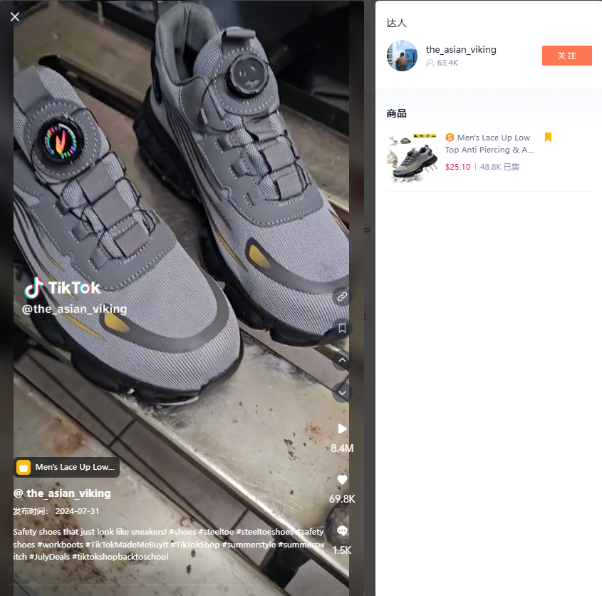 @the_asian_viking的视频发布于7月31日,嘀嗒狗后台观察到该视频目前的播放量达到了840万,播放量上升迅速。在视频中我们可以看到,这款鞋子承受住了令人震惊的各种伤害,在保证功能的情况下,产品的设计也非常巧妙舒适。
