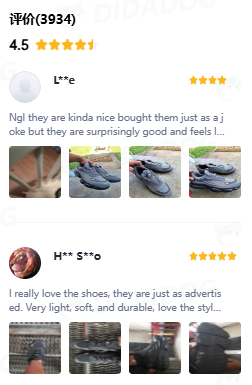 通过嘀嗒狗官网可以查看到商品的评分,目前该商品的整体评分为4.5分,在评论区可以看到许多买过的用户纷纷展示自己的产品:它和一般的鞋子穿起来毫无区别,但是它同时又真的非常结实!