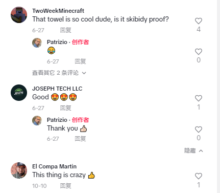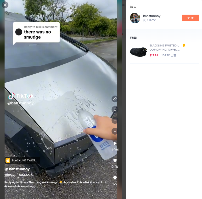 [mcv_dplayer source="https://img.tkfff.com/2024/10/10月23日2.mov" width="100%" height="500"] @bahstunboy的视频发布于8月24日,嘀嗒狗后台观察到该视频目前的播放量达到了51.4万。在视频中,这款产品和其他产品的区别肉眼可见,轻轻一擦,难去的可乐污渍就无影无踪! 评论区中用过的用户纷纷表示:这太疯狂了,这款吸水毛巾的效果就好像魔法一样!