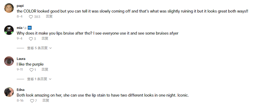 评论区中大家纷纷表示:这款产品的每种颜色都很惊艳,特别是这款紫色,和衣服的颜色非常搭配!甚至有人建议说,既然不会掉色,不如搭配两种颜色一起,会更加震撼!