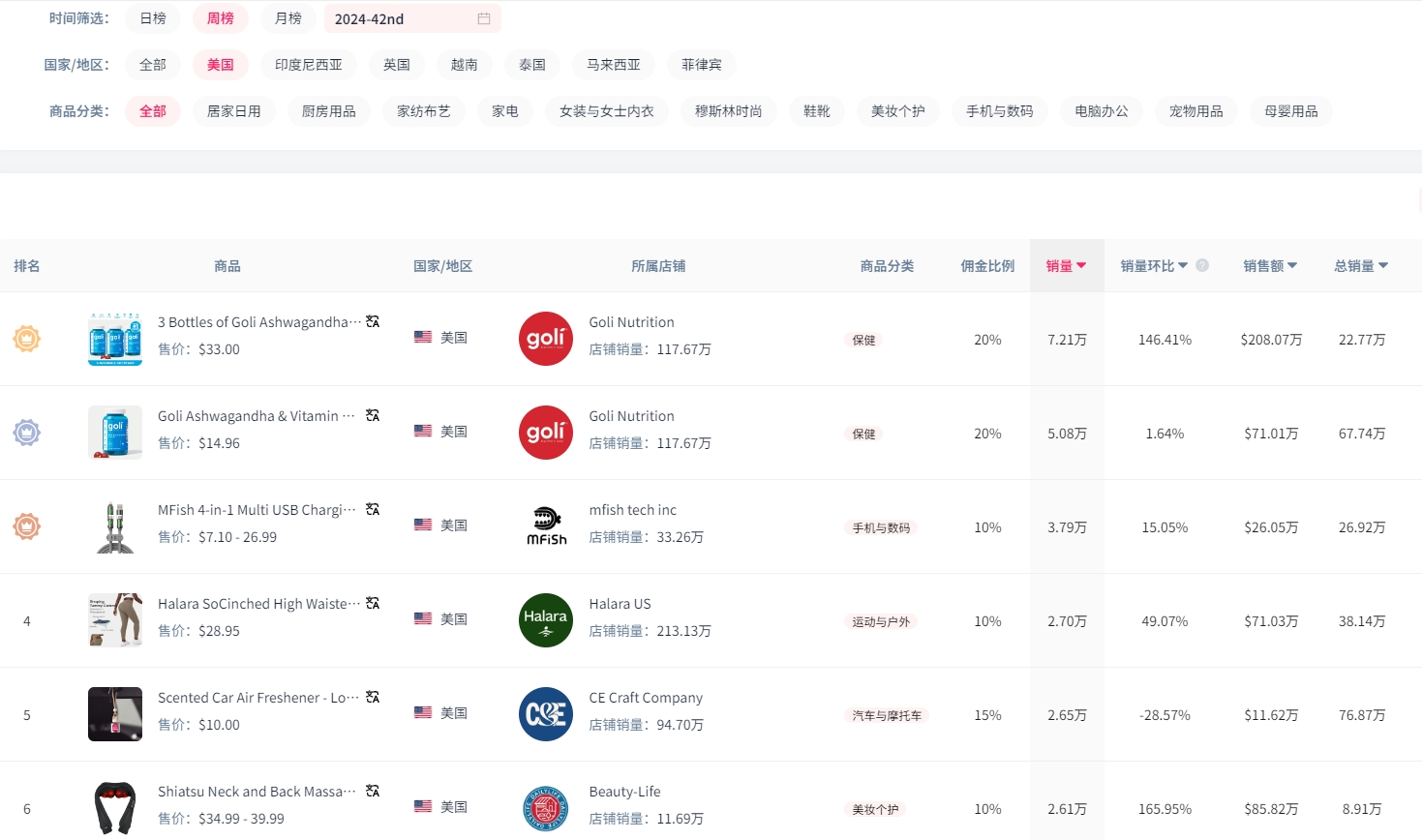 都说“不出海就出局”,近年来出海似乎已经成为大家的共识,而随着TikTok这样的社交平台在海外愈发火热,不仅让更多品牌有了展示自己的平台,也在逐渐成为卖家们重要的销售渠道之一。 日前,一款电动按摩仪冲上美国热销商品榜单前列,并且销量还呈现上涨的趋势。详细来看,该按摩仪在今年1月中旬上线,在近一周中(10月13日至10月19日),其销量增长了165.95%,而在过去28天中,该产品在美国的美妆个护、个护电器、按摩器类目销量榜中排行第一,售出了6.45万件。
