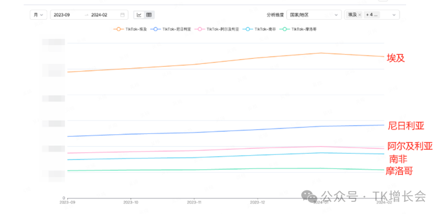 图:TikTok 非洲Top5国家月活跃用户规模变化