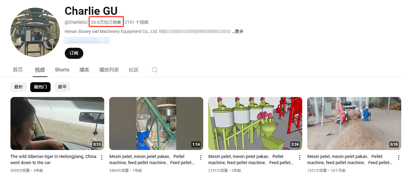 TikTok虽是雪鸮的主战场,但他们的线上营销策略并不局限于一处。 雪鸮同样在YouTube上保持活跃,拥有26.6万粉丝,通过展示产品的详细操作和实际应用场景,传达了饲料机的高效性和创新性。这些内容不仅加深了消费者对雪鸮产品的认识,也帮助建立了品牌的专业形象。