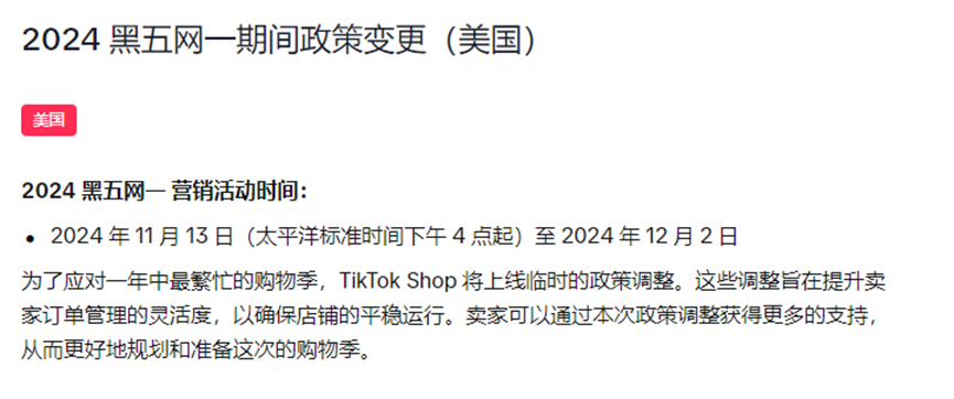 TikTok Shop美国站调整旺季政策 图源:TikTok Shop Academy