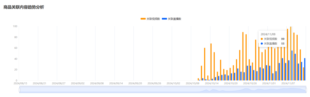 继续观察该商品的视频与直播推广趋势,结合销量增长趋势以及推广趋势判断,该商品仍会继续攀新高。