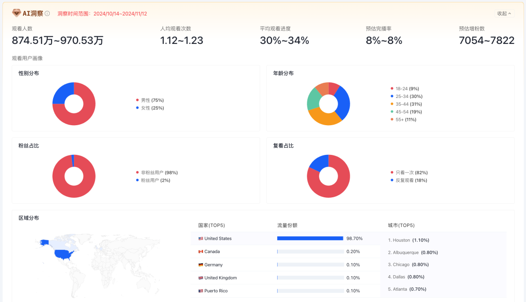 综合各项数据,Tabcut独家算法,AI能力分析出这个视频的相关数据: