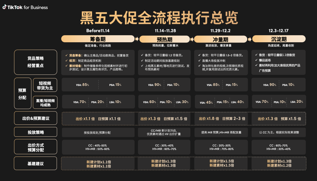 无论商品和平台有哪些变化,有多年跨境经验的商家面对黑五也有一些共通的策略,比如节奏的把控,投放预算的把控,爆品爆仓情况的应对等等。把握运营节奏,及时备货