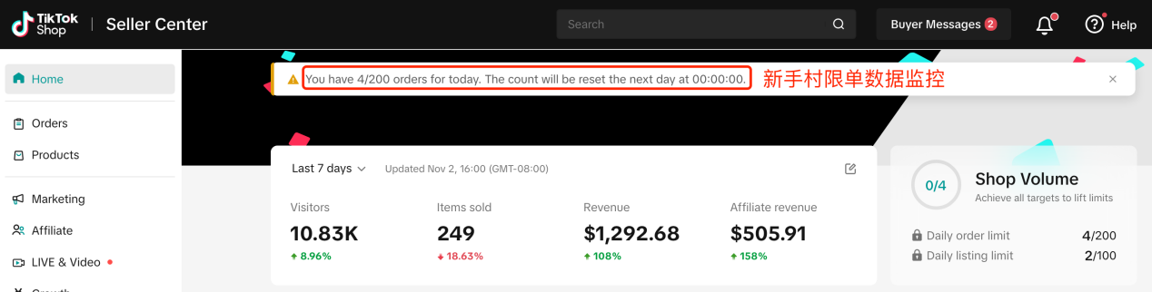 个人本土店新手村期间日单上限100单,企业本土店新手村期间日单上限200单。