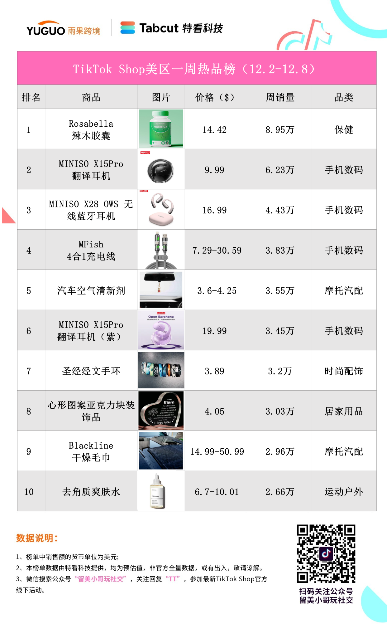TikTok Shop 美国站一周热品数据分析,榜单按销量排序,帮助卖家及时了解 TikTok Shop 美区最新市场现状,掌握选品趋势。