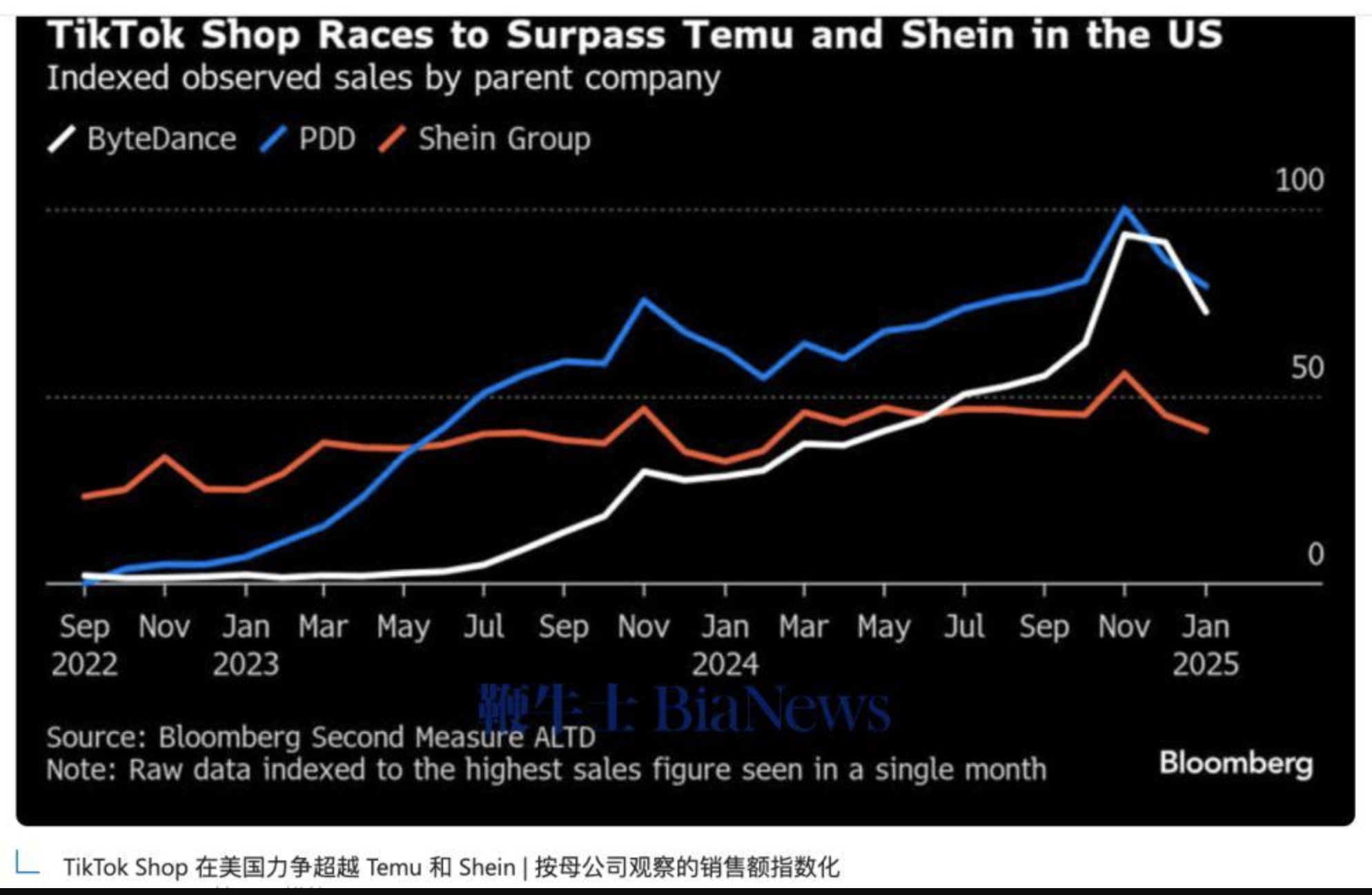 TTS的赢点在于分层抢食:在25美元以上中高端市场(Shein主力战场),TikTok份额同比暴涨16%,超30%的Shein用户转向TikTok;在25美元以下低价市场(Temu优势区),TikTok通过短视频引流和限时促销实现7%的渗透,迫使Temu加速扩建美国仓、游说保留“800美元以下包裹免税”政策。