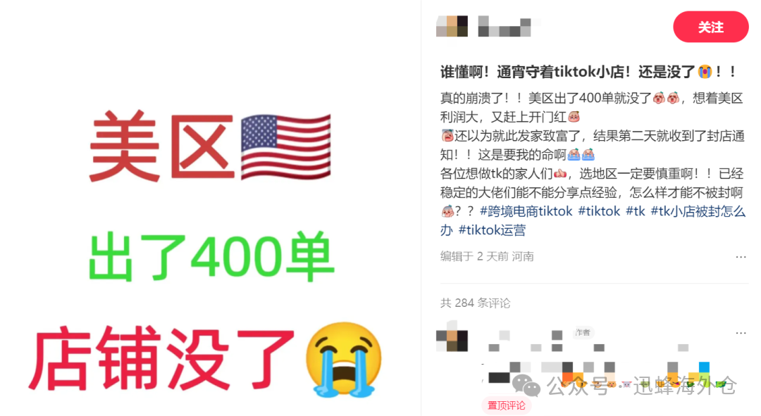 一位跨境卖家在小红书上发文称,今年开工不久,美区店就出了400单,本以为要发家致富了,通宵守着TikTok小店,结果第二天就收到封店通知,遭受重创。