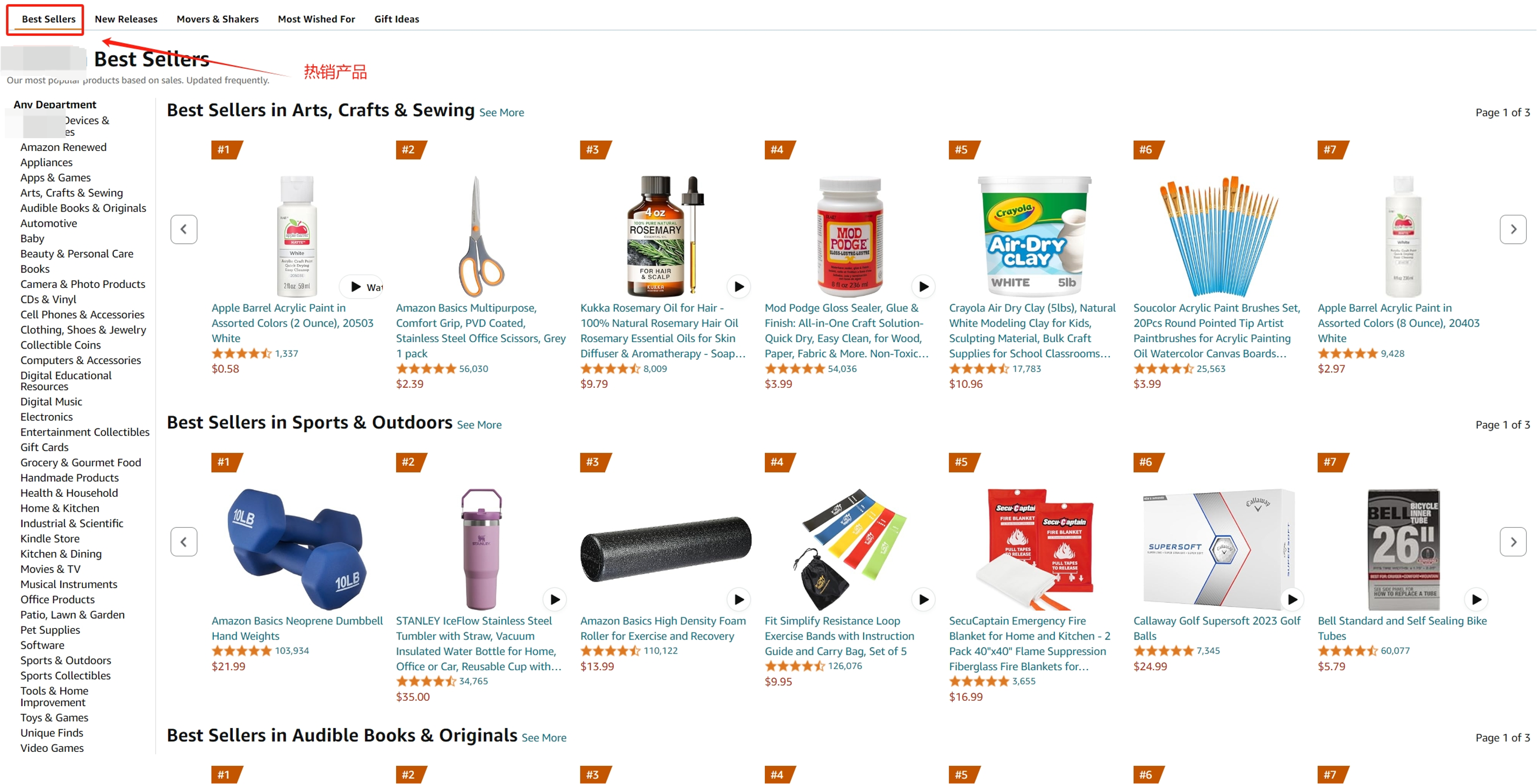 在其他美国头部电商平台,选择热销产品,并结合TikTok Shop商城侧优势类目进行选择