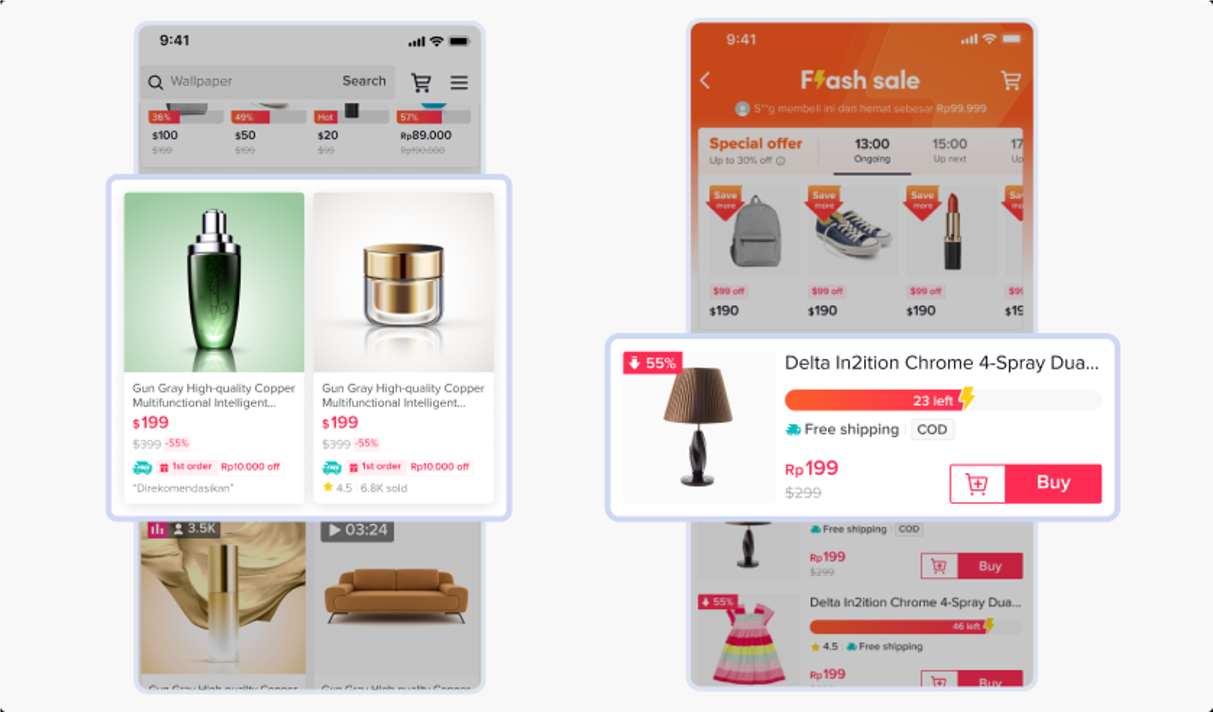 Shop Tab 是TikTok站内的货架场,商家可以在其中展示和销售产品。 Shop Tab 可直接从TikTok 的主页访问让用户可以轻松发现品牌和产品、浏览可购物内容、查看促销活动并直接在TikTok中进行购买。