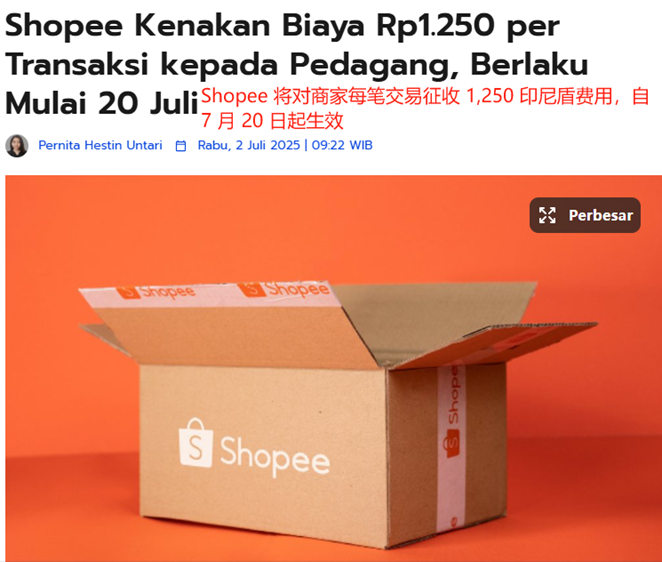 消息显示,近日,东南亚电商巨头Shopee发布消息称,自当地时间2025年7月20日起,Shopee印尼站点将对卖家每笔完成的交易收取1250印尼盾(约合人民币0.56元)的订单处理费,旨在“继续提供各种更具吸引力的促销活动,支持卖家业务的增长。”