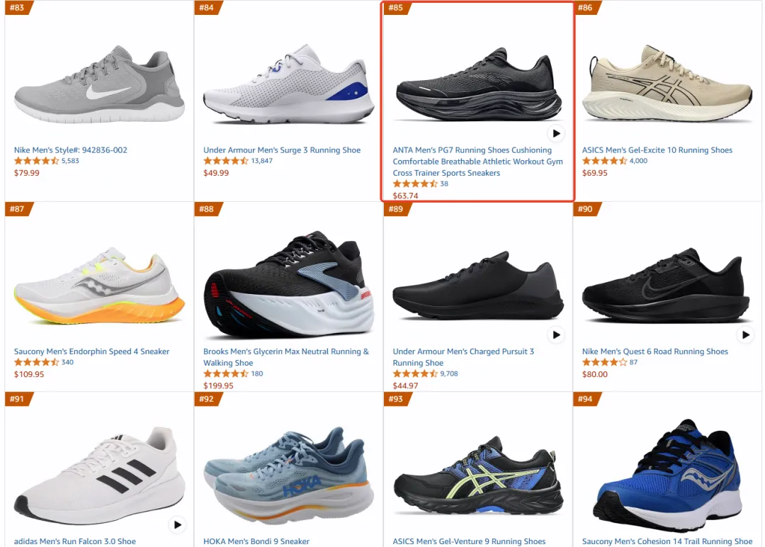 安踏PG7北美亚马逊热销,上架不到1个月迅速跻身路跑鞋前100榜单