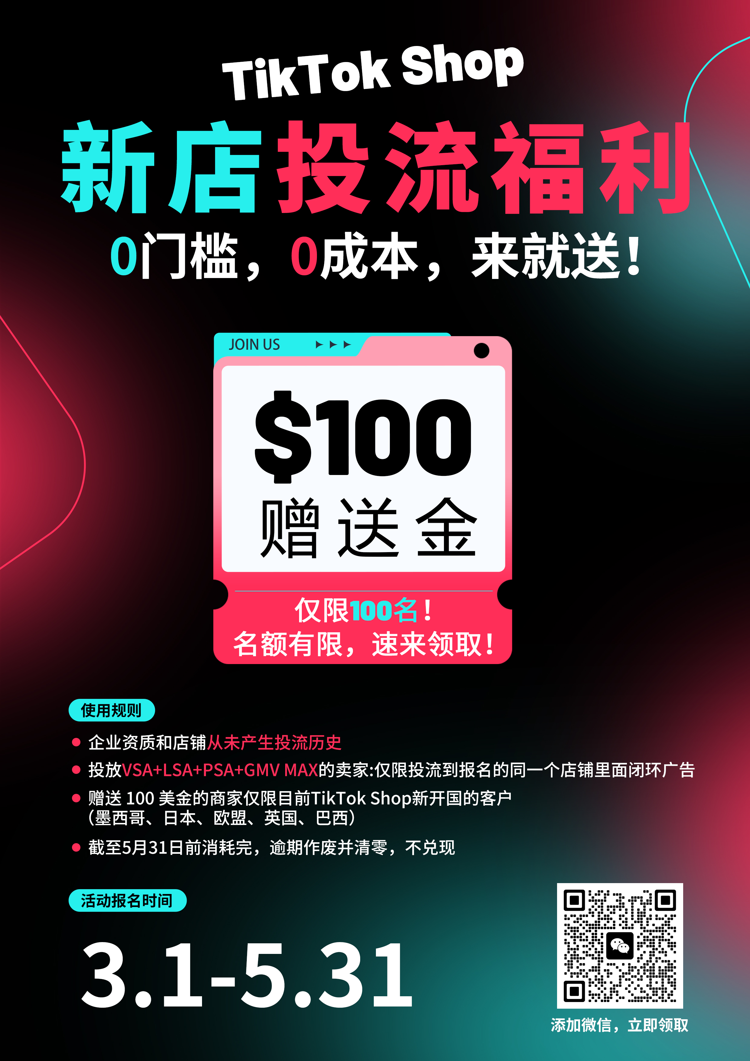 1、新店投流福利:享$100赠送金+1V1账户指导