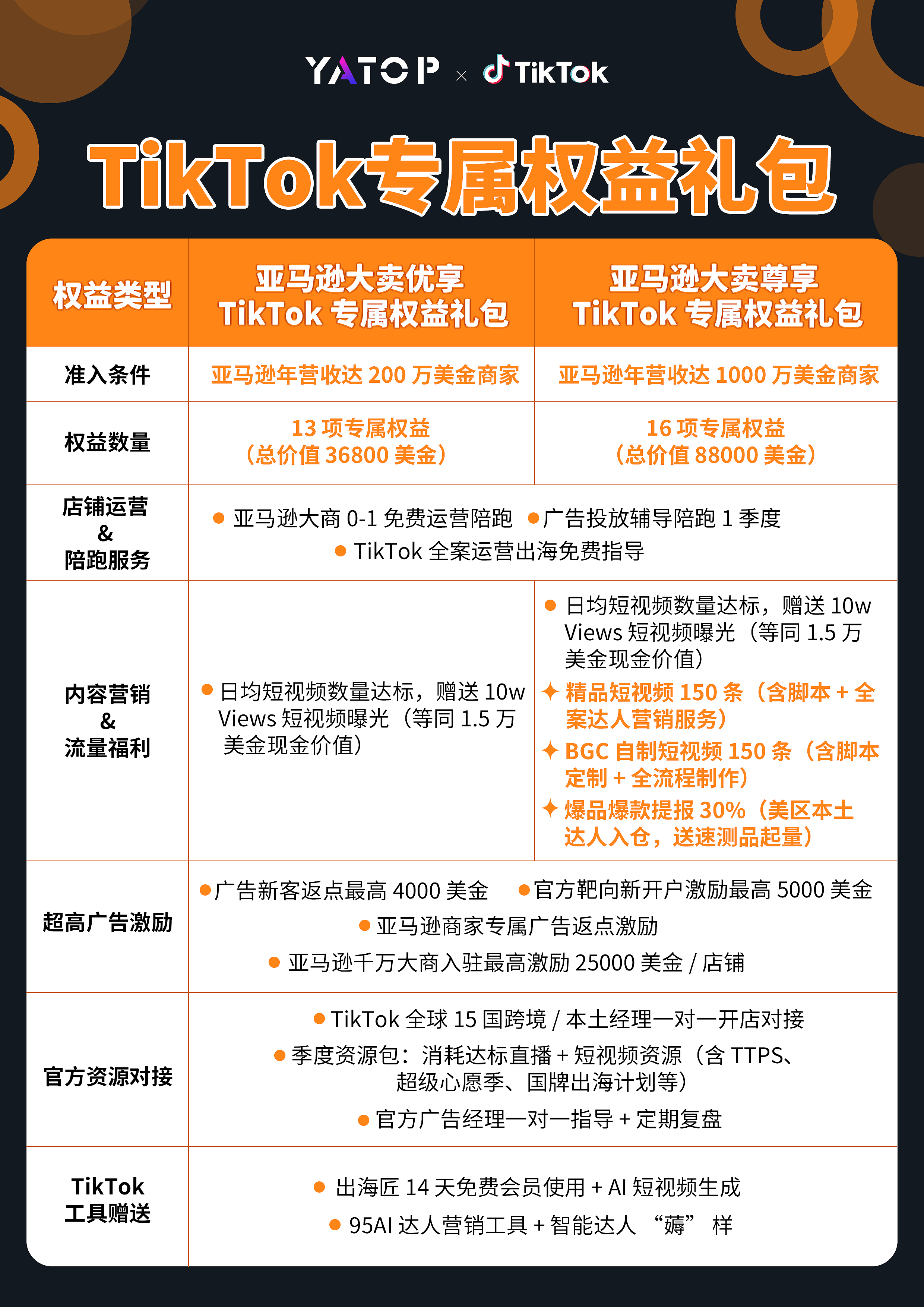 2、亚马逊转TK商家专属福利:TikTok全案代运营一站式落地