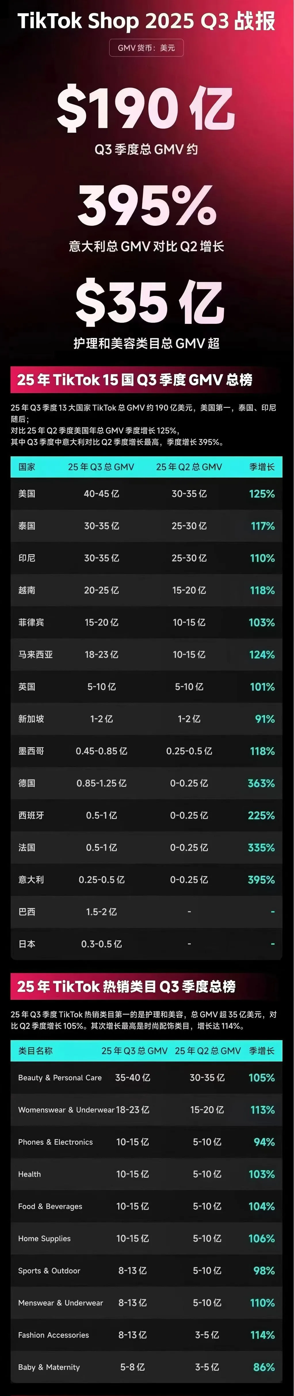 在品类表现上,护理与美容以35-40亿美元的GMV登顶全平台,而在东南亚市场,美妆个护类目更是持续主导市场。