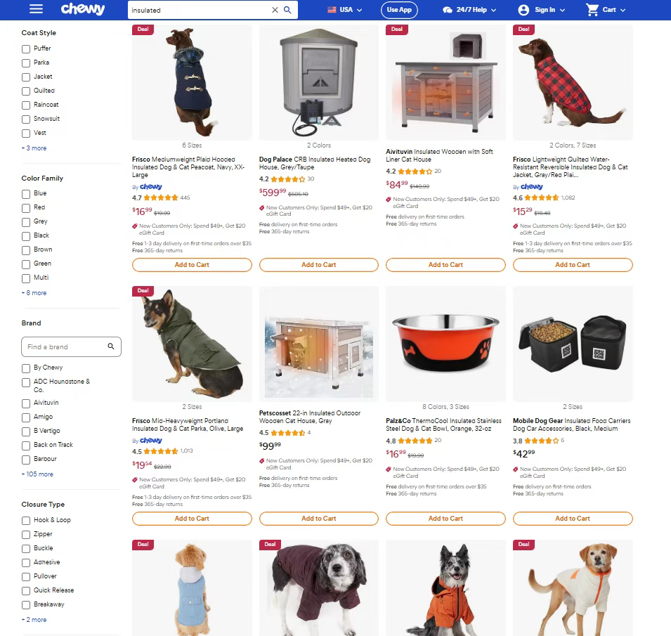 在Chewy、PetSmart等专业宠物电商的货架上,贴着“sherpa”(雪尔帕)、“insulated”(隔热)、“waterproof”(防水)标签的产品,销量如火箭般蹿升,增幅均超过80%。