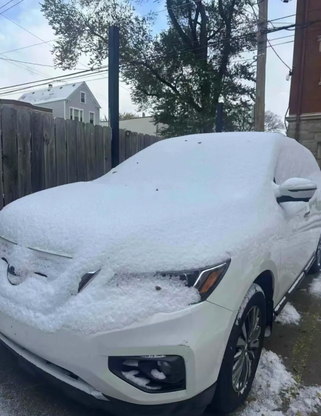 有网友一早拿着尺子测了测,这一夜就积了足足5英寸,妥妥的“雪崩式入冬”。