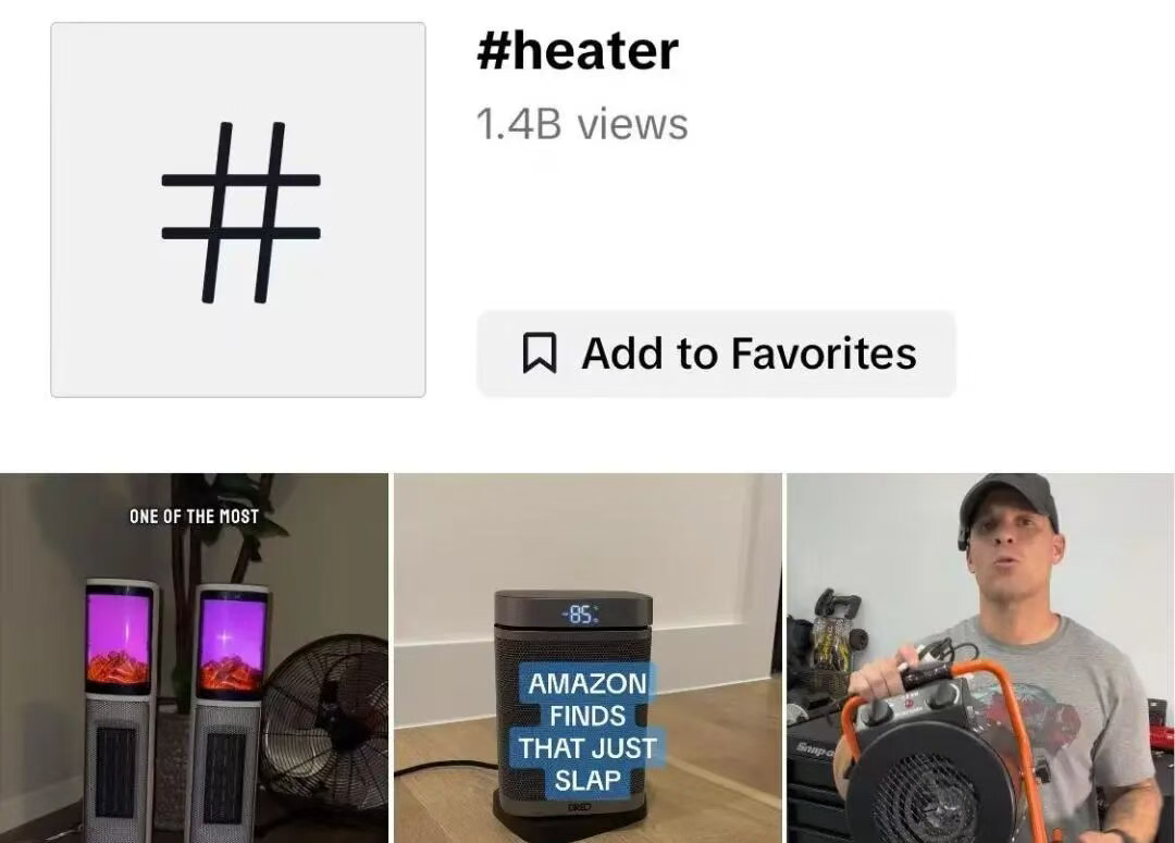 寒潮来袭,TikTok保暖赛道热度持续飙升。数据显示,#warm(温暖主题总标签)、#heater(取暖设备)、#winterclothes(冬季服装总类)、#handwarmers(暖手宝 / 电热暖手器)、#hotwaterbottle(传统热水袋)、#electricblanket(电热毯)等核心话题标签,播放量攀升。