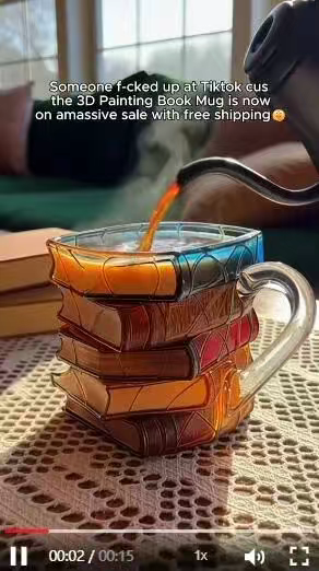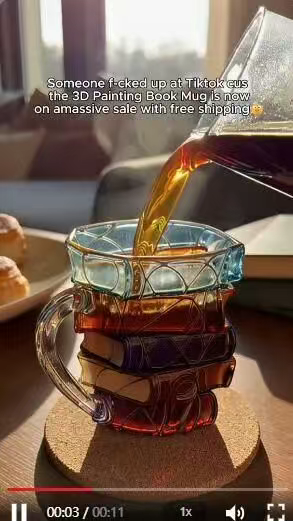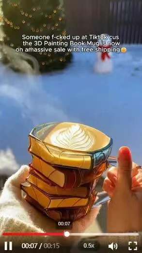 视觉属性强、适配礼品场景的马克杯品类,在AI 带货中表现尤为突出。在美区厨房用品类目,一款3D书籍造型陶瓷杯更是创造了销售奇迹。该产品上线20多天售出超38200单,总GMV达 59.35万美元(约合人民币419.25万元)。