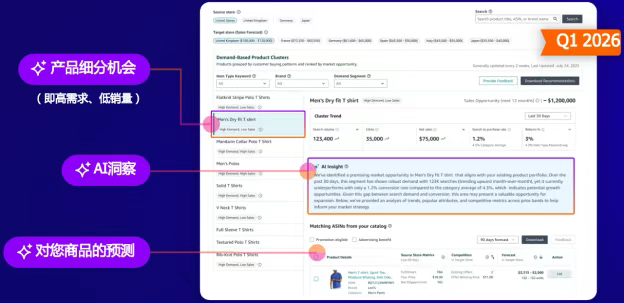 (将在2026年Q1上线的亚马逊“AI升级版选品指南针”页面)