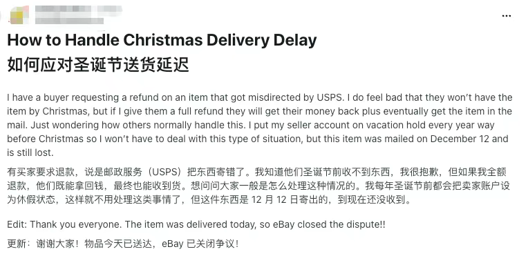 一旦进入12月中下旬,只要没能赶上圣诞,纠纷概率就会明显放大。