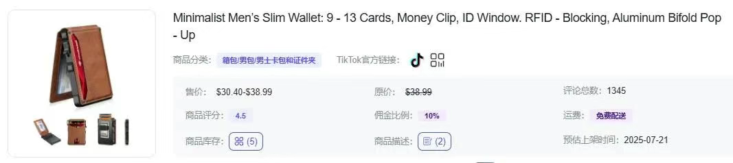 这家主打男士钱包的店铺,销量直接突破6.23万件,总销售额高达182.13万美元(约人民币1276万元)。这款钱包能在海外卖得这么火,靠的就是精准拿捏用户痛点、找对了市场差异。