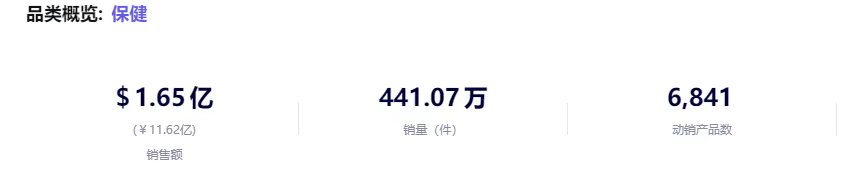 保健与运动户外类目也呈现出强劲增长态势。数据显示,保健类目月销量约400多万件,销售额高达1.65亿美元。