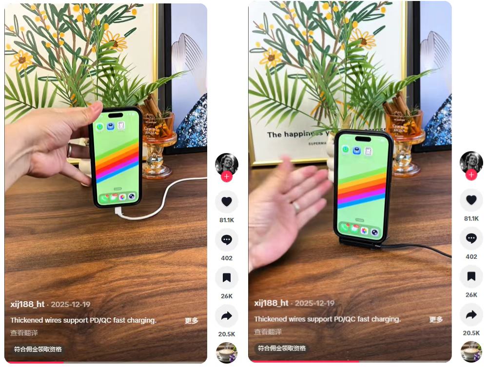 于是,那款爆红TikTok的隐形支架充电线就诞生了。